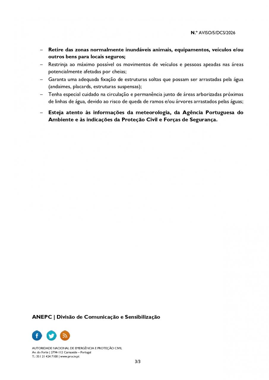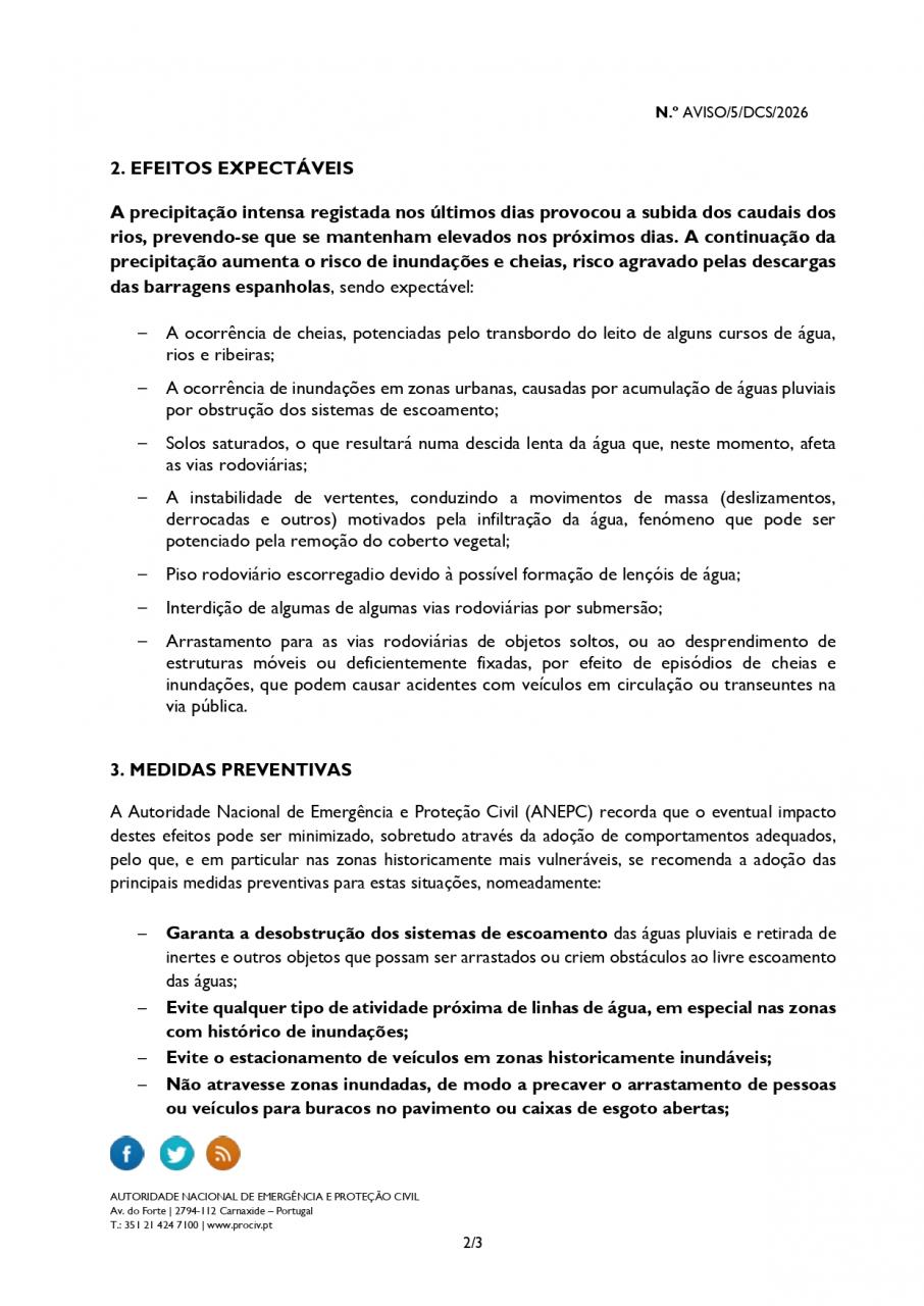 AVISO À POPULAÇÃO - RISCO DE CHEIAS E INUNDAÇÕES – MEDIDAS PREVENTIVAS E DE AUTOPROTEÇÃO