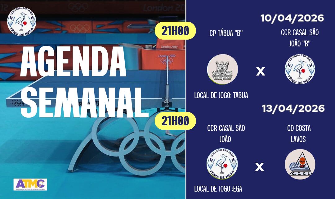 Agenda Semanal - CCR Casal São João - Ténis de Mesa 20260410 e 20260413.